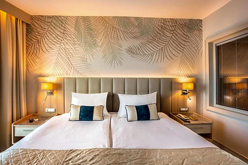 Charisma De Luxe Hotel은(는) 터키 쿠사다스(Kuşadası)에 자리한 5성급 휴식처로, 도심에서 약 1.8km 떨어져 있습니다. 아침을 스타일 있게 시작할 수 있도록 조식을 제공하며, 바닷가의 환경은 햇살과 미소, 그리고 소소한 럭셔리를 약속합니다. 세련된 이 호텔은 에게해 해안을 바로 앞에 두어 여행자들이 산들바람과 해변 분위기 속에서 편안히 쉴 수 있도록 초대합니다.