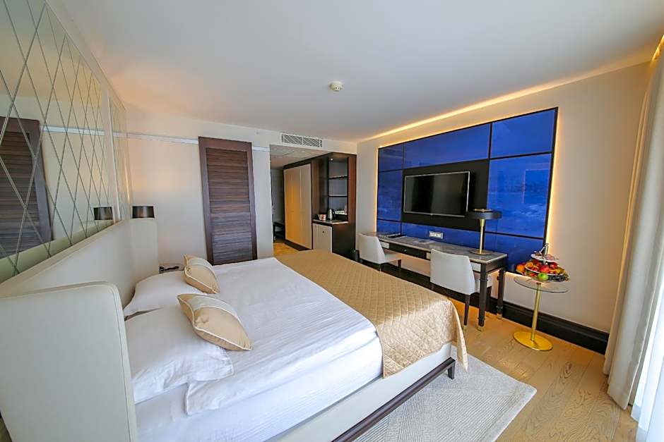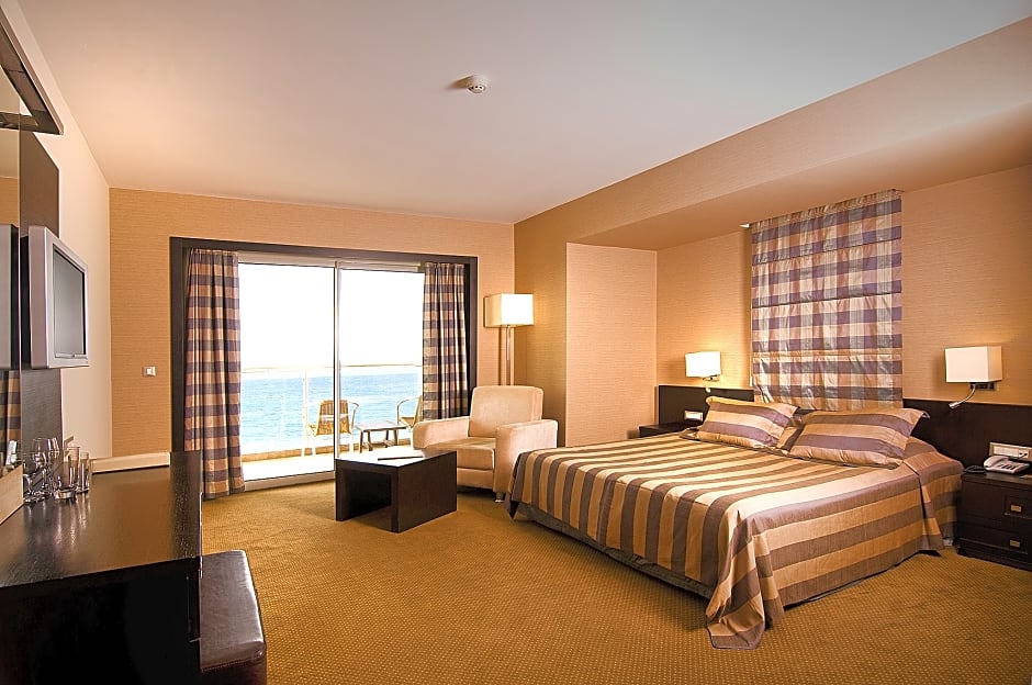 Double superior sea view is 344 square feet and includes either a double bed 131-150 width or 2 single beds 80-130 width plus balcony, satellite tv , hairdryer, tea and coffee making facilities , ironing set, safe, bathrobes, and slippers and is Wheelchair-accessible.