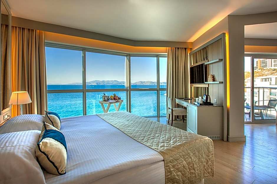 +1 (888) 385-8465Charisma De Luxe Hotel — 5-зірковий курорт у Кушадаси, Туреччина, розташований приблизно за 1,8 км від центру міста. Гостям пропонують сніданок, щоб розпочати ранки зі стилем, а морське розташування обіцяє сонце, усмішки та нотку розкоші. Цей стильний готель ставить Егейське узбережжя просто за порогом, запрошуючи мандрівників розслабитися в свіжій, пляжній атмосфері.