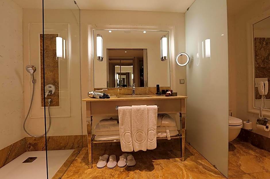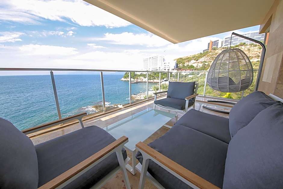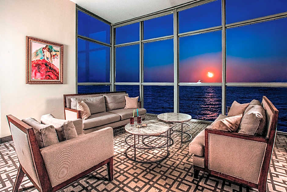 На території — приватна пляжна зона та розташування прямо на березі, а також кілька басейнів — відкритий і критий — обидва доступні для безкоштовного користування. Спа-зона включає турецьку лазню (хамам), парну, сауну та спа-ванну, усе безкоштовно для гостей, а також безкоштовний Wi‑Fi і приватну парковку. Заклади харчування та дозвілля: ресторан і бар, жива музика, дитячі зручності, фітнес-центр і тераса для споглядання заходу сонця.